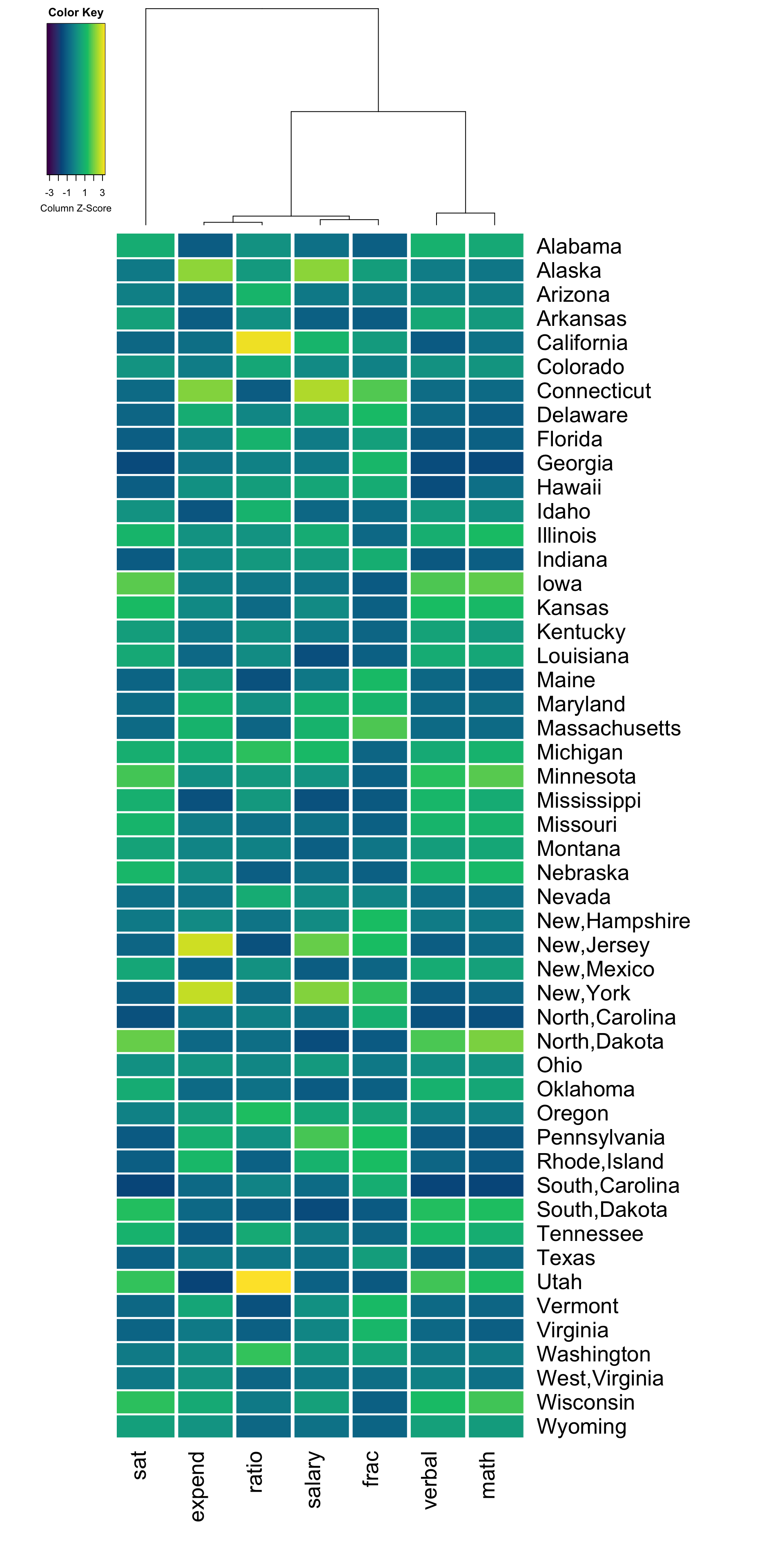 | State | expend | ratio | salary | frac | verbal | math | sat | fracCat |