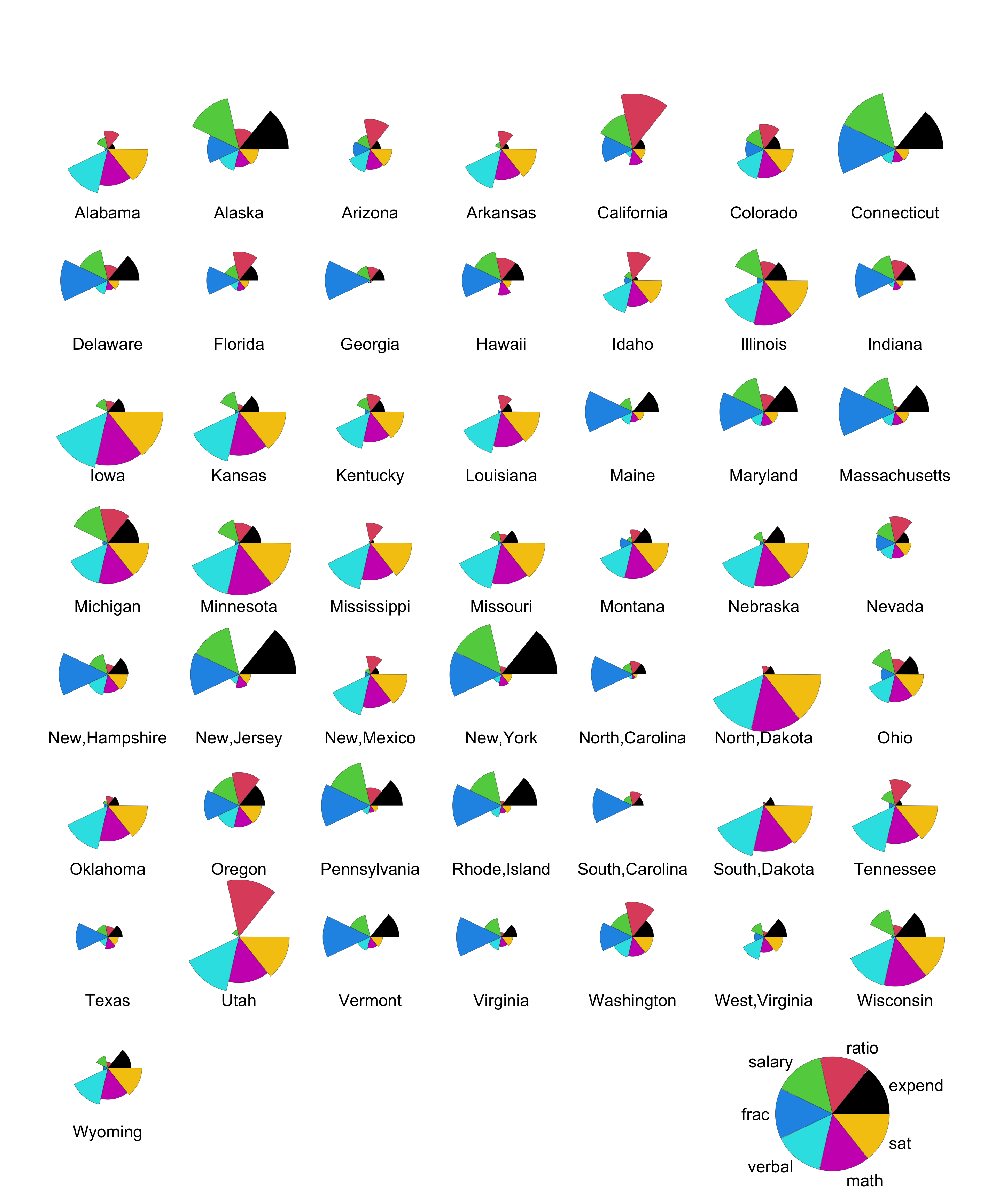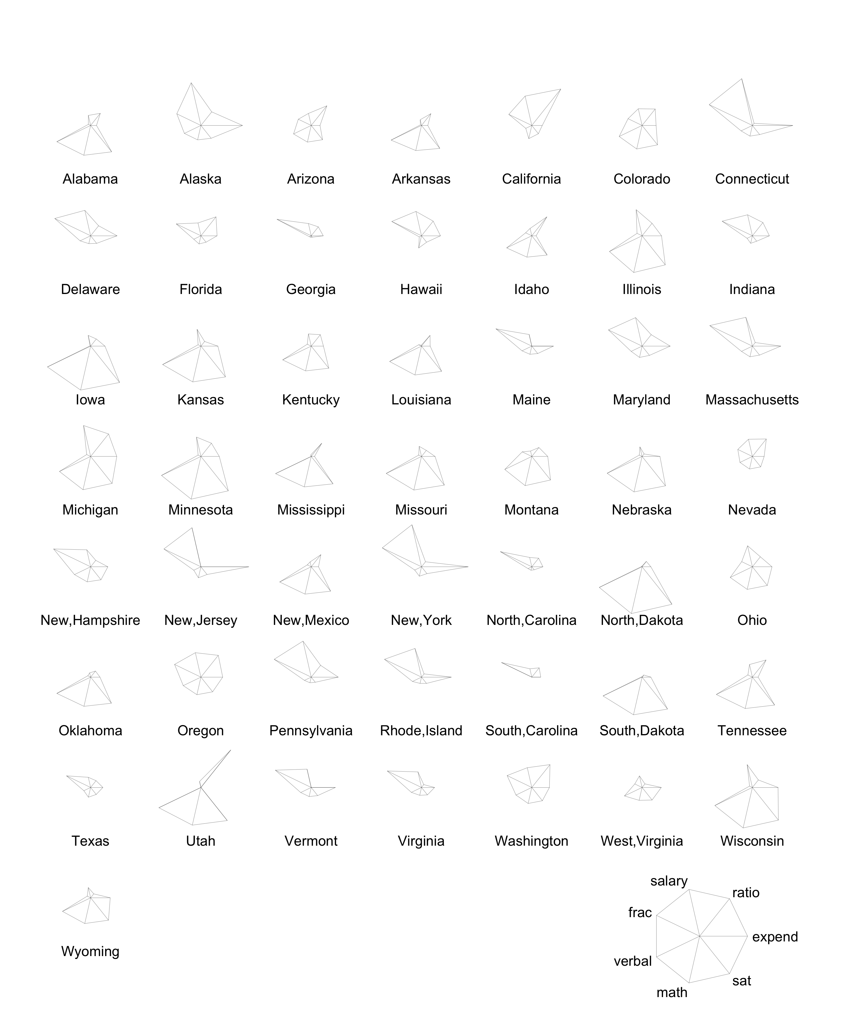 What do you notice? What new insight do you gain about the variation across U.S. states with the star plots?