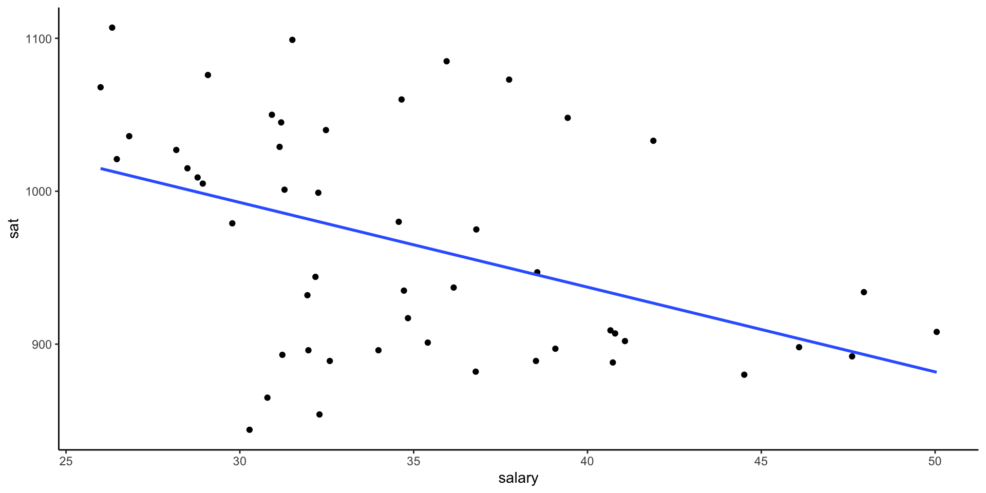 ggplot(education, aes(y = sat, x = salary)) +