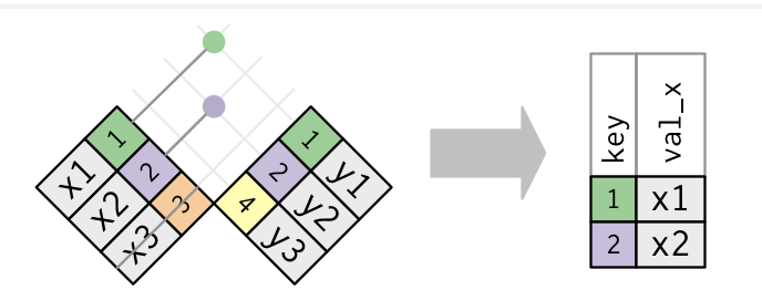 semi_join(): discards any cases in the left table that do not have a match in the right table. If there are multiple matches of right cases to a left case, it keeps just one copy of the left case.