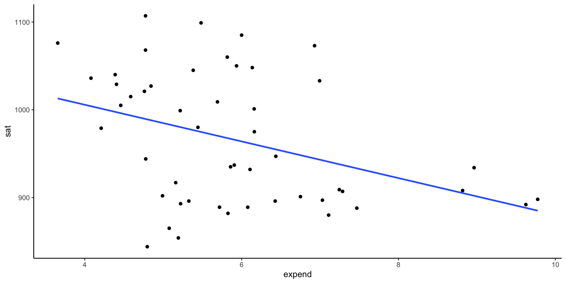 ggplot(education, aes(y = sat, x = expend)) +