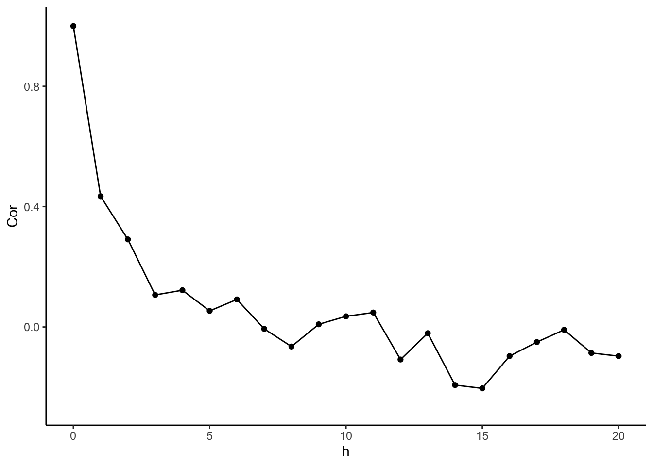 \[c_h = \frac{1}{n} \sum^{n-|h|}_{t = 1} (y_t - \bar{y})(y_{t+|h|} - \bar{y})\]