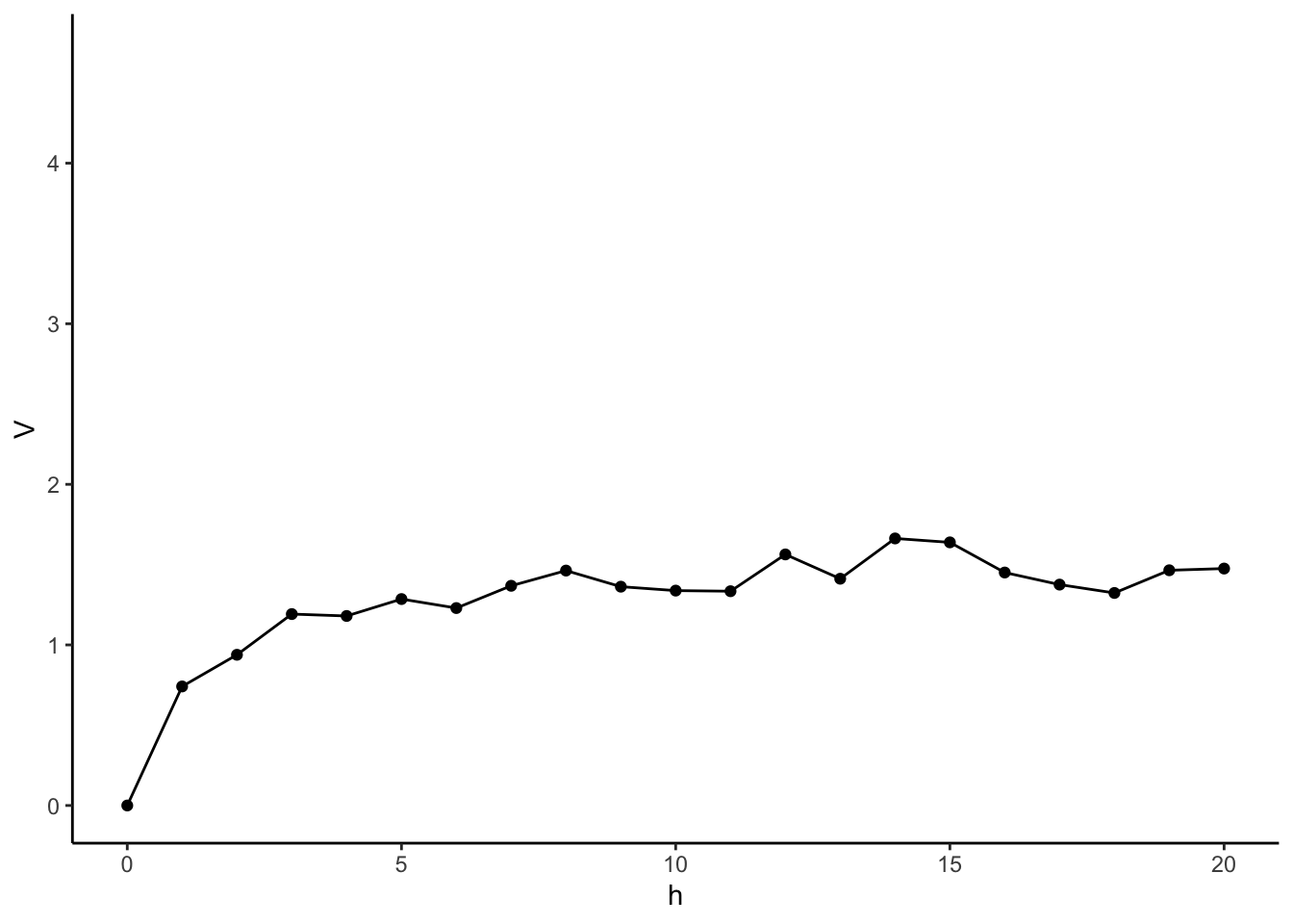 Thus, if we assume the stronger constraint of weak stationarity (compared to intrinsic stationarity), the semi-variogram is a function of the difference, \(h = i-j\),