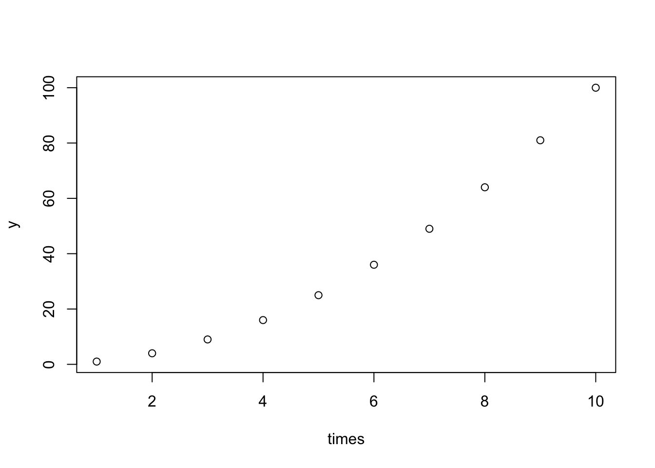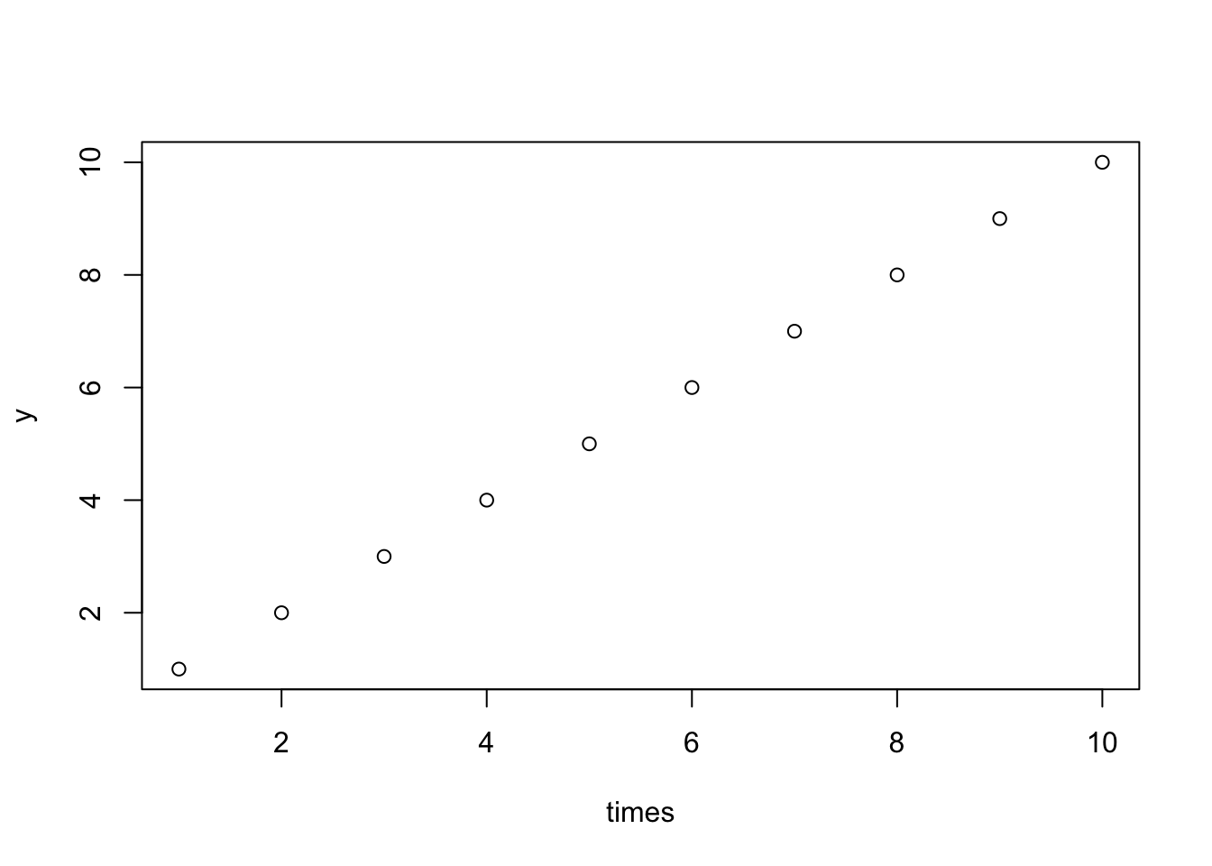 times =1:10y = timesplot(times, y)