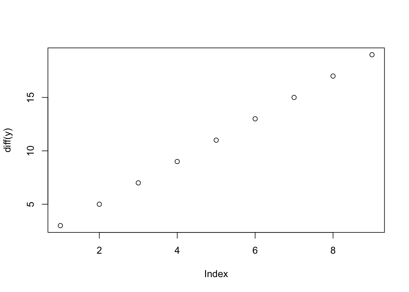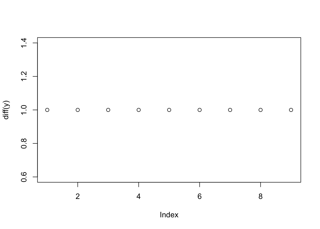 times =1:10y = timesplot(times, y)plot(diff(y))