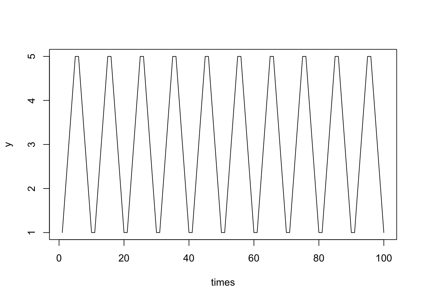 times =1:100y =rep(c(1:5,5:1),10)plot(times,y,type='l')