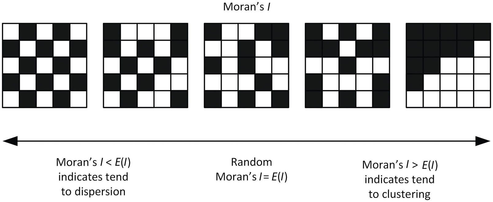 Moran’s I, one measure of spatial correlation, is a statistic that quantifies the degree of spatial autocorrelation among neighboring data.